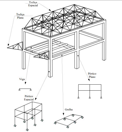 Pórtico Espacial: é o caso mais geral, pois admite geometrias e cargas quaisquer.
